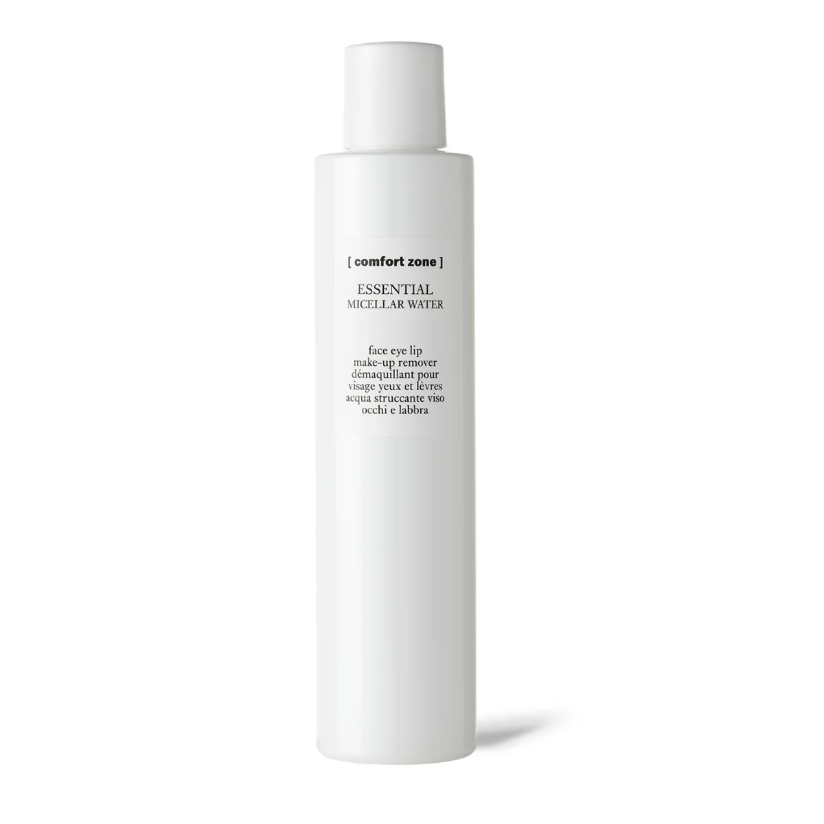 Comfort Zone Essential Micelar Water, to multiaktywny płyn micelarny z betainą. Świeży, lekki i niezwykle delikatny, usuwa makijaż z twarzy, oczu i ust, odblokowując pory i oczyszczając skórę bez konieczności spłukiwania.