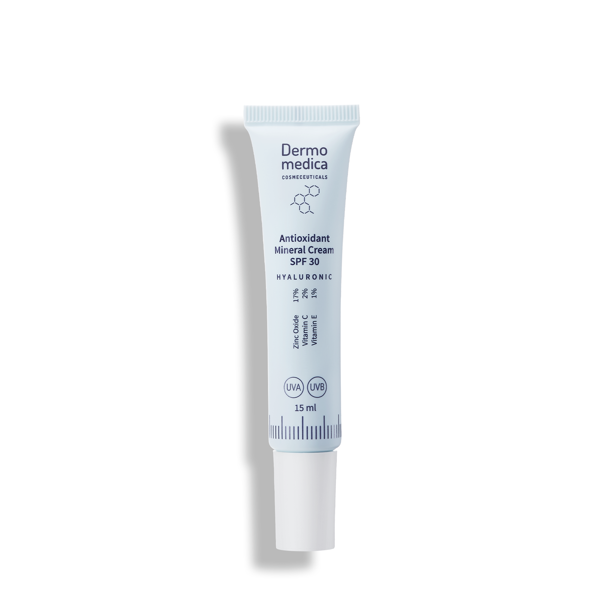 Odbijanie i rozpraszanie promieni UV skutkuje mniejszą ilością energii, która dociera do naskórka i skóry właściwej, co z kolei zmniejsza ryzyko uszkodzeń komórkowych. Jest uważany za najbezpieczniejszy filtr przeciwsłoneczny dla skóry wrażliwej, uszkodzonej, skłonnej do rumienia i przebarwień. - Witamina C 2% – silny antyoksydant, rozjaśnia skórę i poprawia jej koloryt.